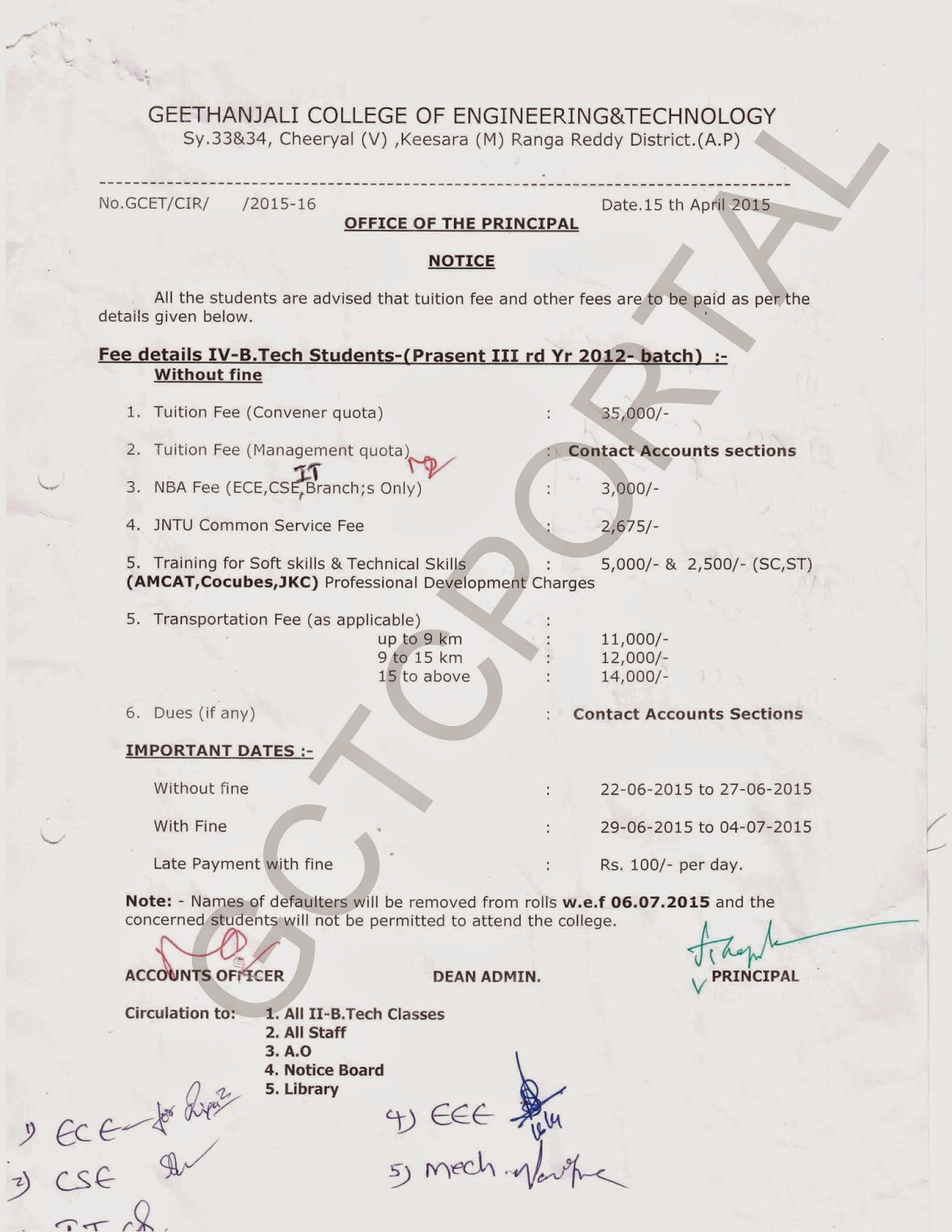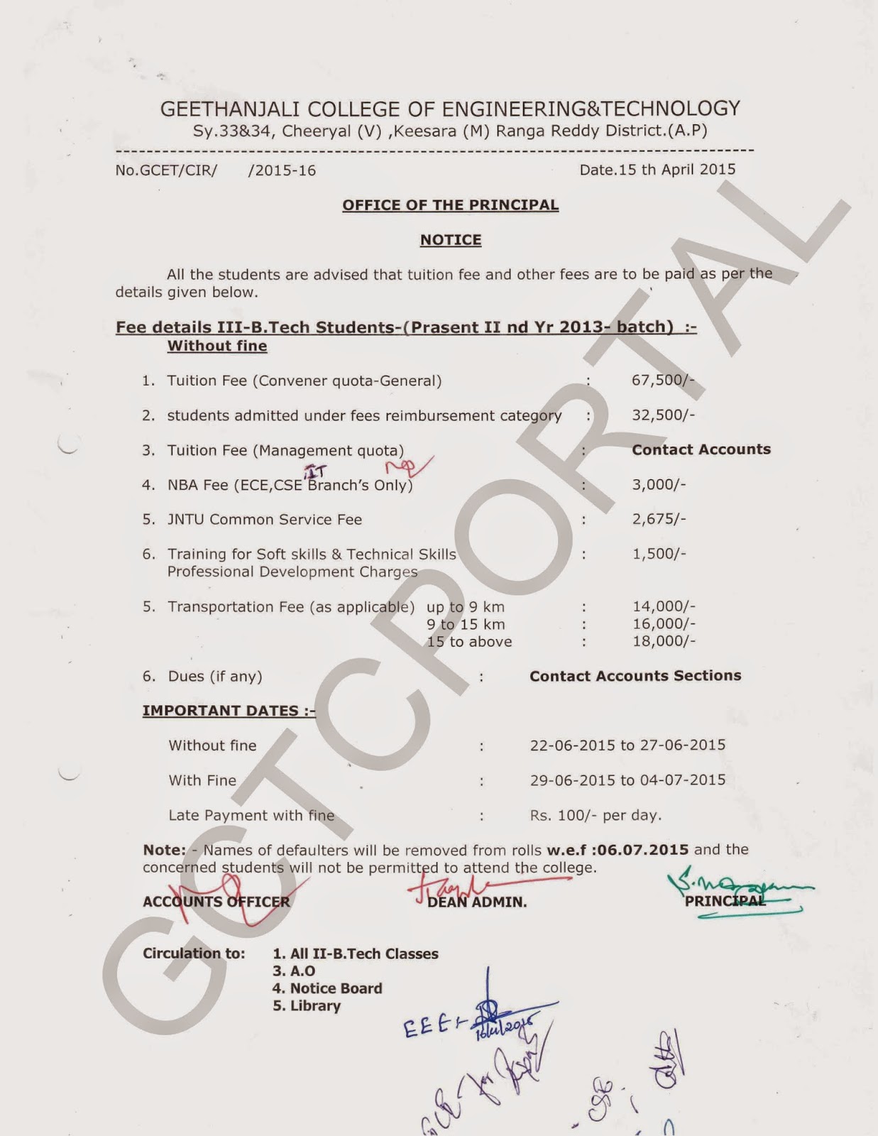 Revised Academic Fee for B.Tech 2nd 3rd 4th Years | 2015-2016 jQuery UI Tabs - Default functionality B.Tech 2nd YearB.Tech 3rd YearB.Tech 4th Year